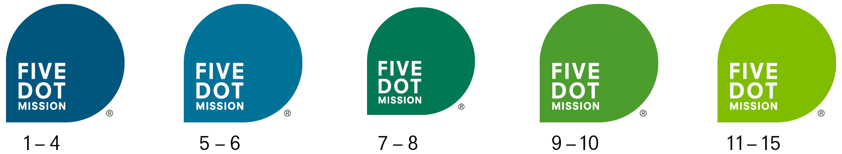 As many as 3 points can be achieved in each of the categories presented, totalling a maximum of 15 points. According to the total number of points achieved (1-15), the FIVE-DOT classification is conducted using the following colour gradation.